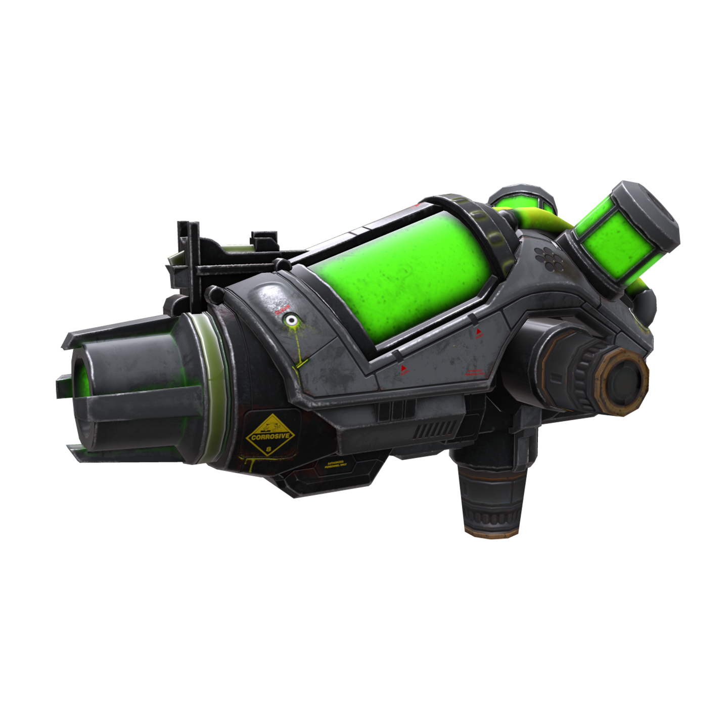 酸を発射できるランチャー。高腐食性の液体で敵ロボットにダメージを与え、装甲を溶かしてしまう。命中するたびに、敵に強力な時間経過ダメージを適用する