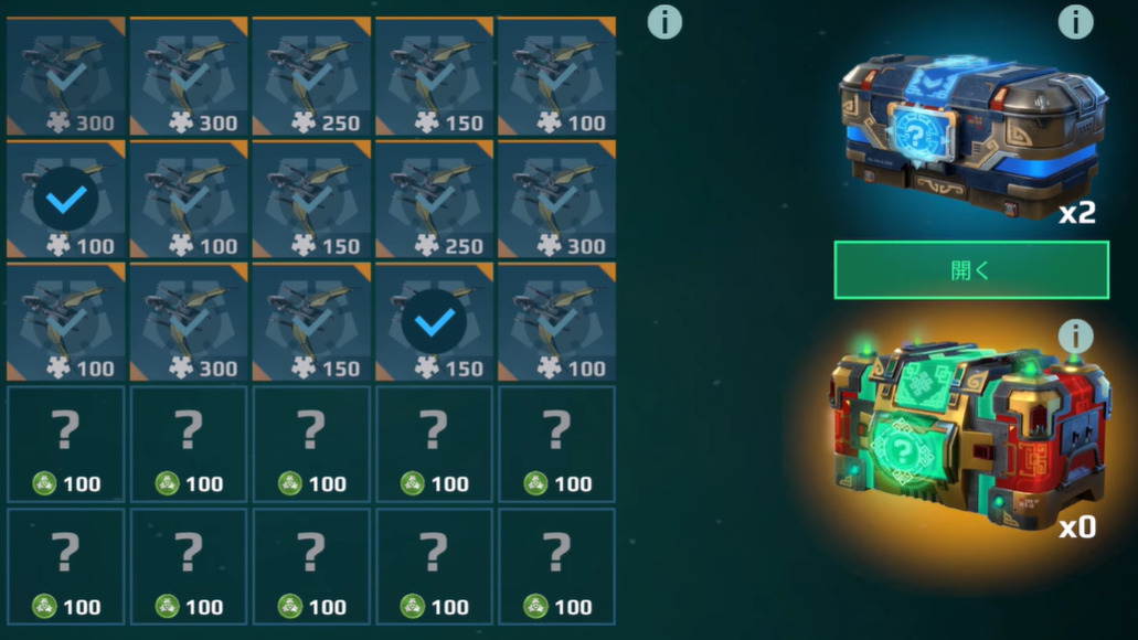母艦は各母船ごとの「コンポーネント」を10,000まで貯める事で作成可能。