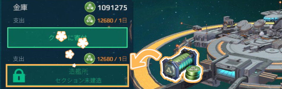 上記の方法に加え、クラン内で解放されていれば「造艦所」でもコンポーネントを収集する事が可能。
