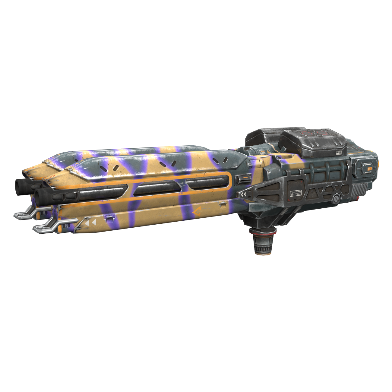 中距離のキネティック自動大砲。高ダメージと適度な連射速度を持つ。ターゲットに着弾後、時間の経過とともにダメージを与える。