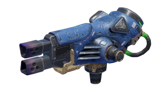 中距離のキネティック自動大砲。高ダメージと適度な連射速度を持つ。ターゲットに着弾後、時間の経過とともにダメージを与える。