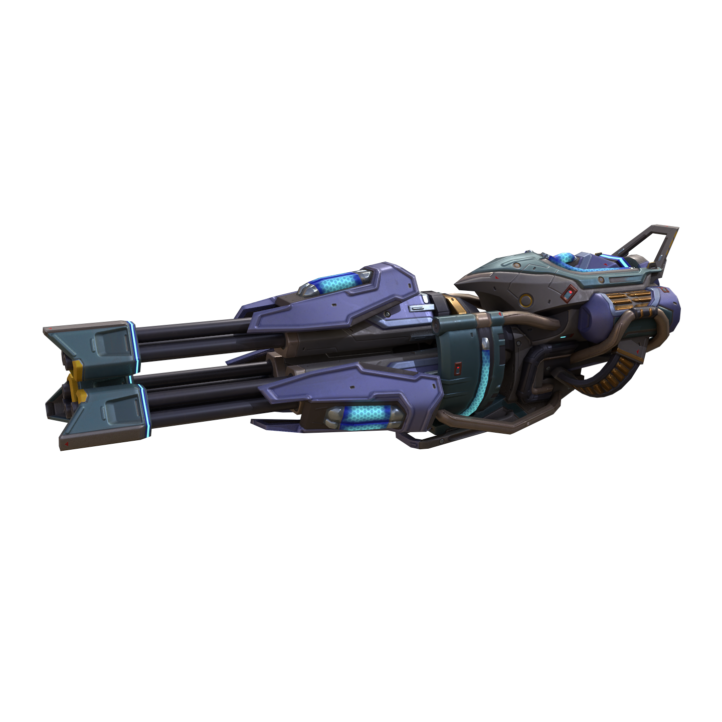 キネティック弾を放つことができるマルチバレルの高速マシンガン。発射された弾はxメートル飛んだ後、狙った敵に向かって飛んでいく。連続発射すると、マシンガンがヒートアップして発射速度がX%増加する。この武器は超近距離および中距離で、物理シールドを持つ敵ロボットに対して最も効果を発揮する。