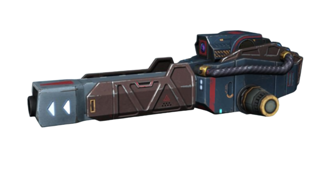 特徴的な火炎放射器とロケットランチャーの「ハイブリッド」武器で、弾を発射しつつ灼熱の炎をも噴射できます。敵1体に一定弾数がヒットすると、爆発が起きてその敵と近くにいる他の敵にもダメージを与えます。