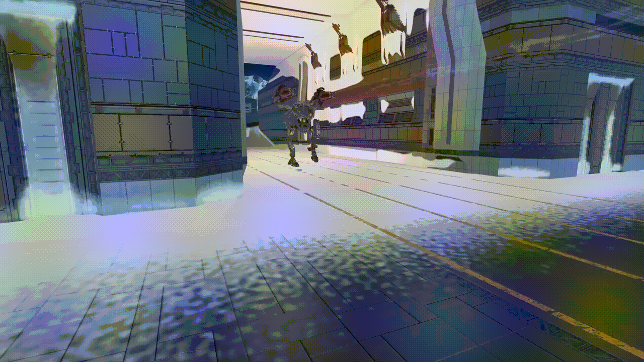 Icarusのテレポート技術のさらなる進化を証明する一例といえるロボット。一見して脆弱な印象があるかもしれないが、戦闘モードを起動するとこのロボットは文字通り「豹変」する。2つの自動高速発射銃器が近くにテレポート出現し、火力を増大。そして機体には重装甲部位がこれまたテレポートで装着され、生存性が大幅に上がる。