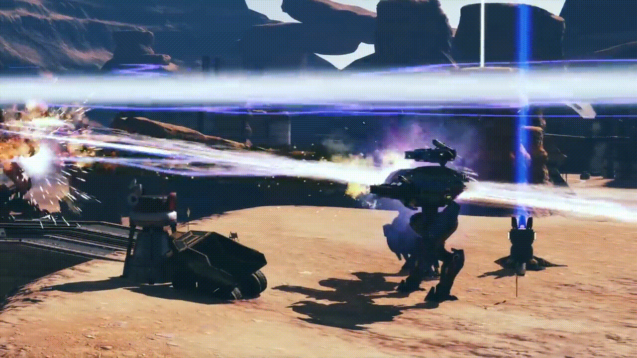 • 中武器2つを格納し飛行を行う。エネルギー属性の内臓武器を起動し、更に上昇中の2秒間+上昇後飛行時5秒間(計7秒間)Absorberが展開