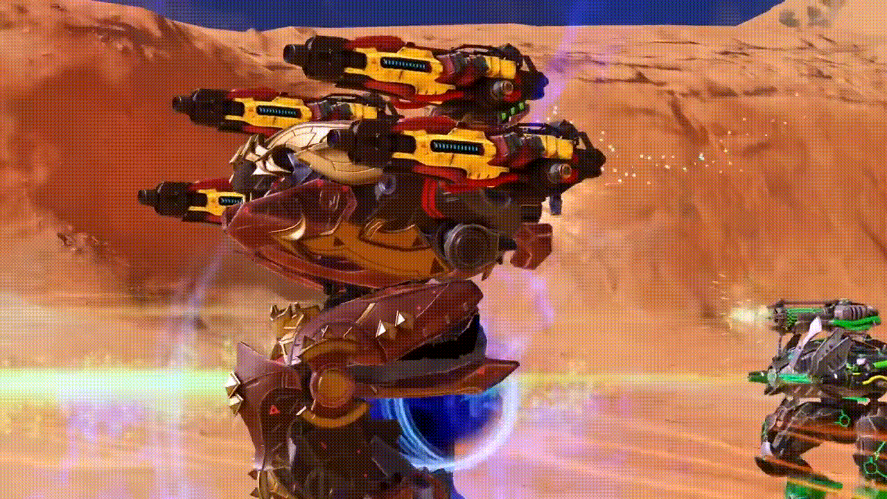 10.4版にて移動速度が増加 「47km/h」→「50km/h」 防御ポイントの増加 「110(52.4%)」→「150(60%)」 攻撃モード時の範囲ダメージバフが増加 「15%」→「20%」 “Golden Horn”内臓グレネードランチャーの与ダメージ+20% |