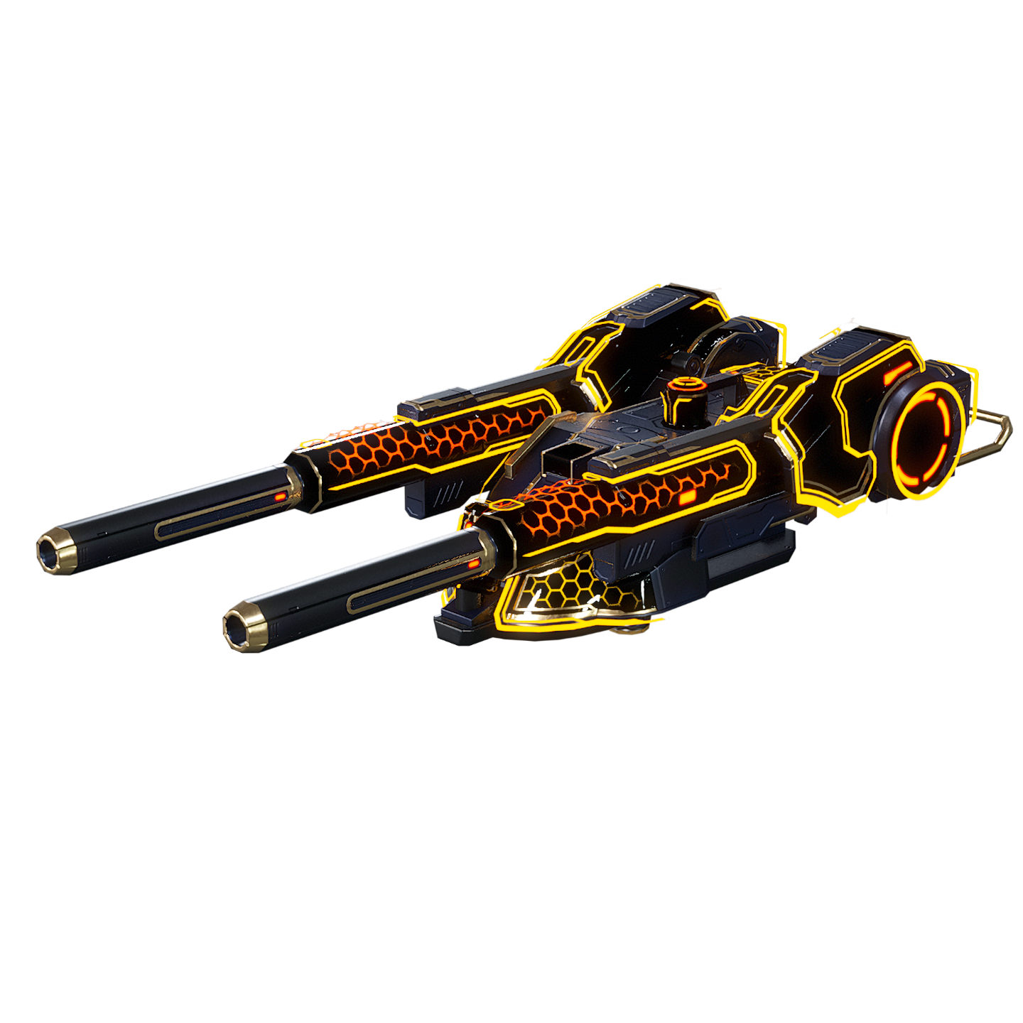 中距離・長距離で効果的な双頭機関砲。単発でもフルオートでも発射できる。物理シールドを使用する敵にとって恐ろしい武器。ヒットするたびに強力なDOT効果を与える